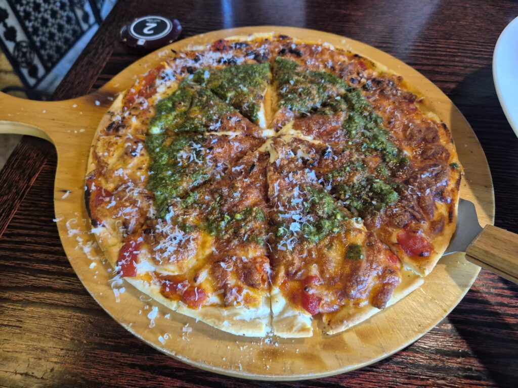 바질 페스토가 풍성하게 올라간 스타일이었고,